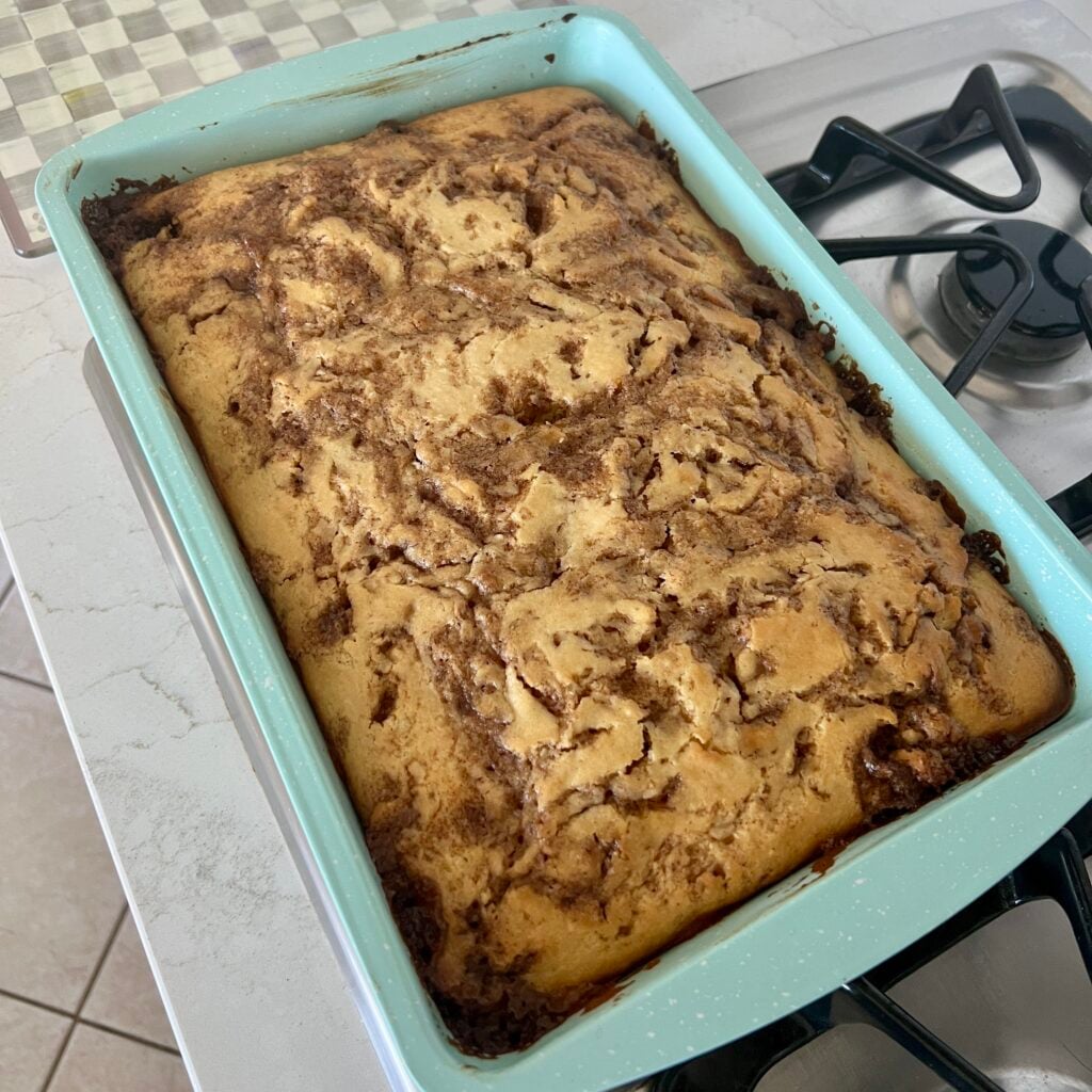 All the cinnamon sugar goodness you love in a cinnamon roll in an easy to make cake.