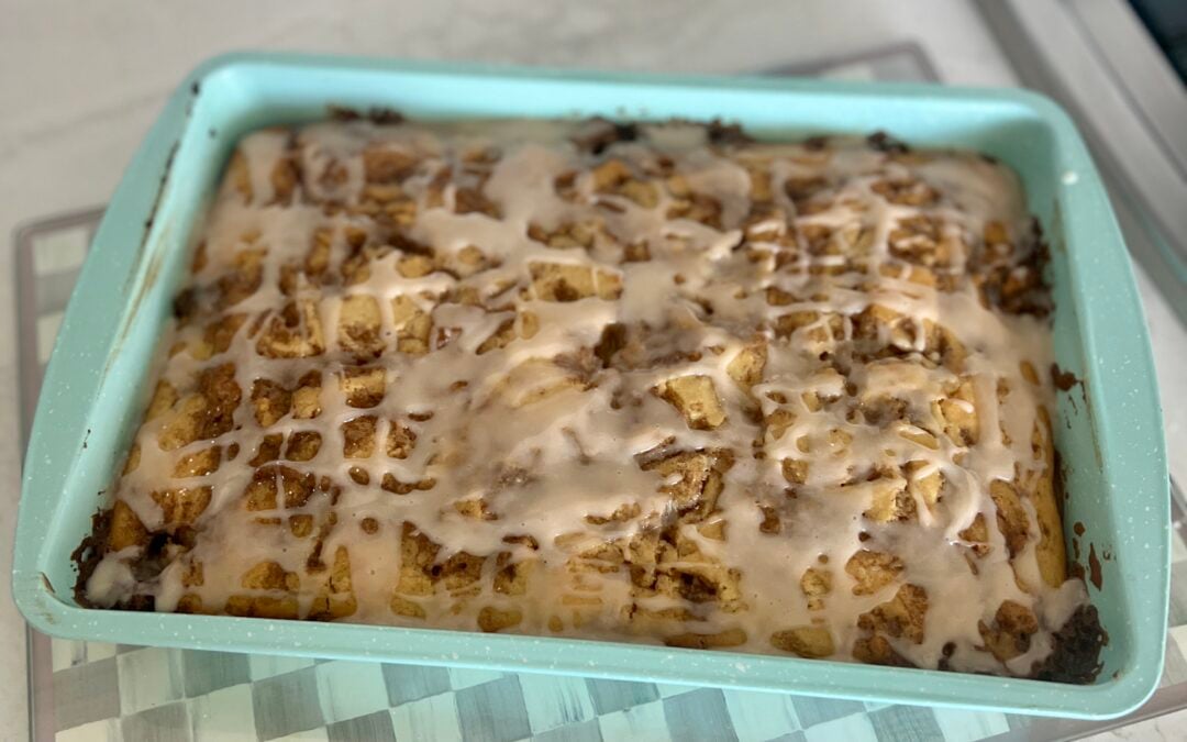 This easy to make cinnamon roll coffee cake has been a go to recipe for as long as I can remember. I mean, who doesn’t love the cinnamon sugar buttery sweet goodness of a cinnamon roll? So why not just bake up those flavors in a cake? Am I right? I thought so!