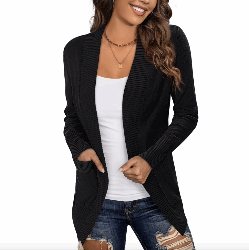 There’s another Barefoot Dreams cardigan that has a subtle stripe design. In my opinion, it’s a must for layering with leggings!