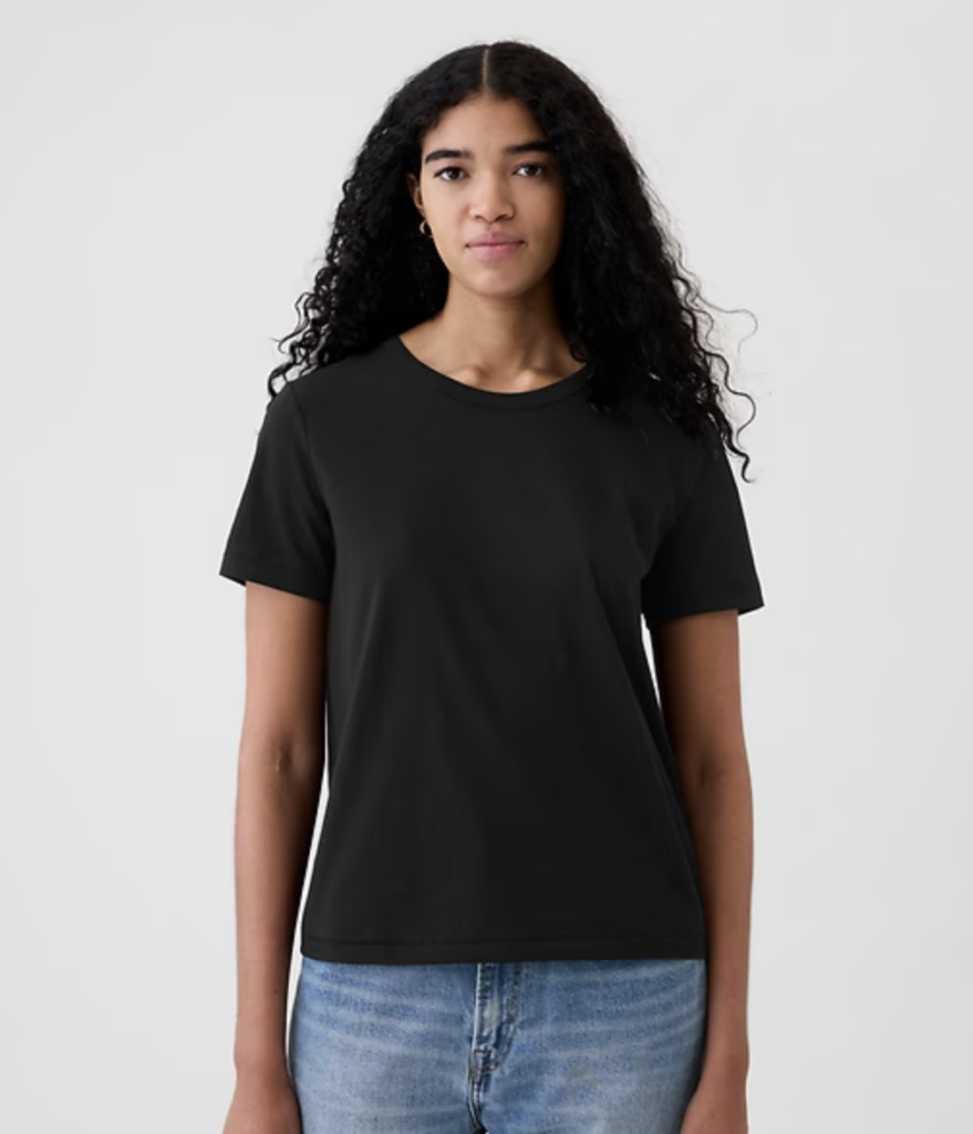 If you’re looking for a basic tee, I love this 100% cotton style. It comes in multiple colors, and it has a relaxed yet tailored fit.