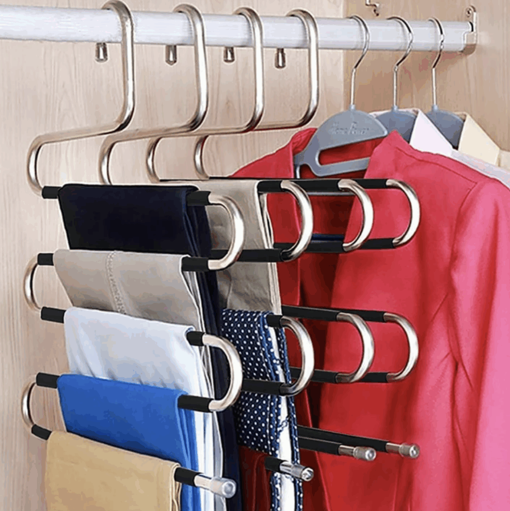 Closet looking cluttered? Save space with this 5-tier pant organizer. It’s also great for wardrobe pieces that wrinkle or crease easily.