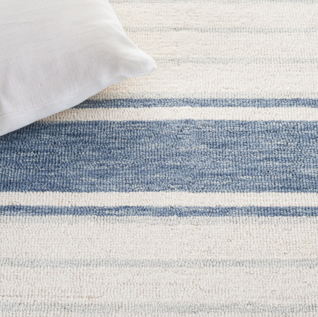 I love how a rug can totally transform a space, and this hand-tufted wool pile striped style is no different! The stripes are classic, and it comes in plenty of sizes.