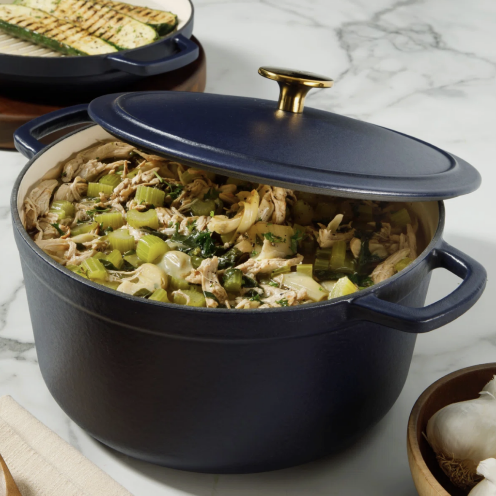 I also like this Sur La Table cast-iron Dutch oven that cooks evenly and hits the mark for versatility.
