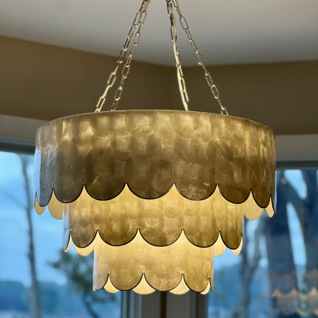 THE BEST DUPE!! A lot of you asked me about our kitchen light capiz shell chandelier, but it is no longer available from the retailer where I originally made my purchase.